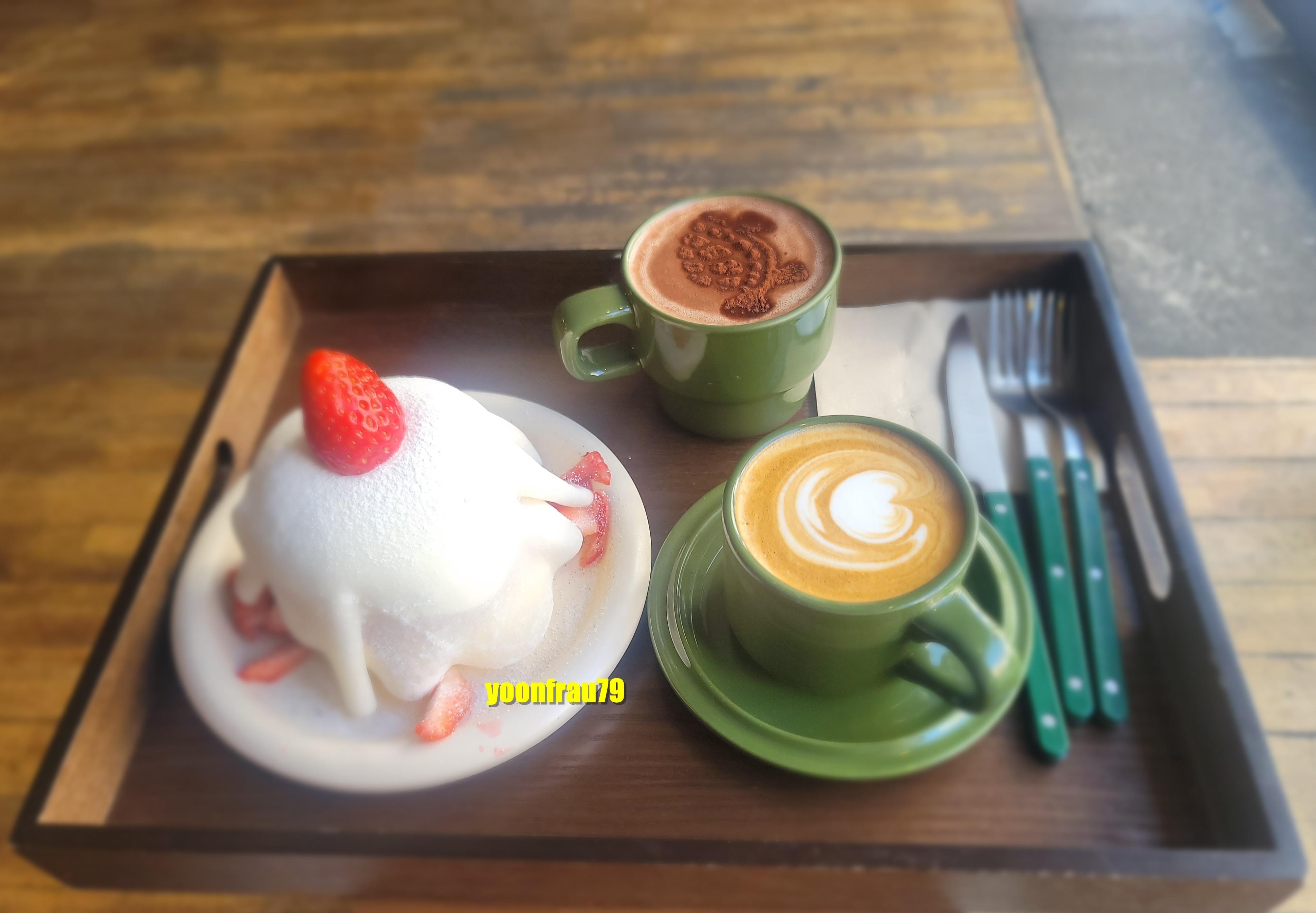 딸기모찌수플레, 플랫화이트, 초코라떼였는데, 각각의 맛과 조합이 훌륭해서 감탄을 금치 못했습니다.