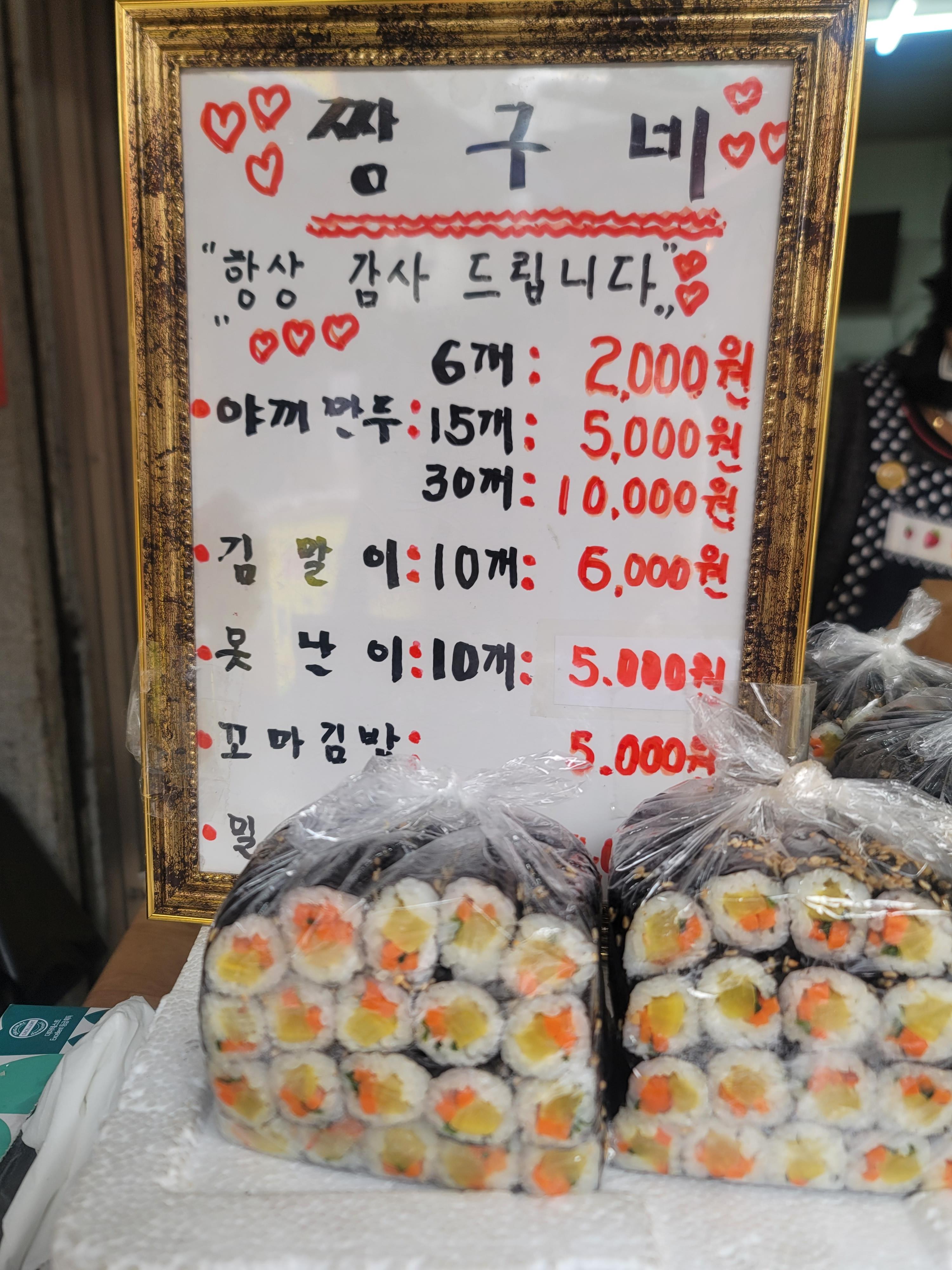 | 꼬마김밥 | 5,000원 | 간단하게 곁들이기 좋은 메뉴 |