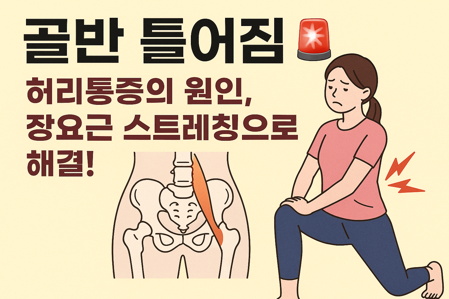 👉 이 근육이 굳거나 짧아지면 골반이 당겨져 틀어지고, 허리가 압박을 받고 결국 만성 요통, 디스크, 심하면 무릎 통증까지 이어짐