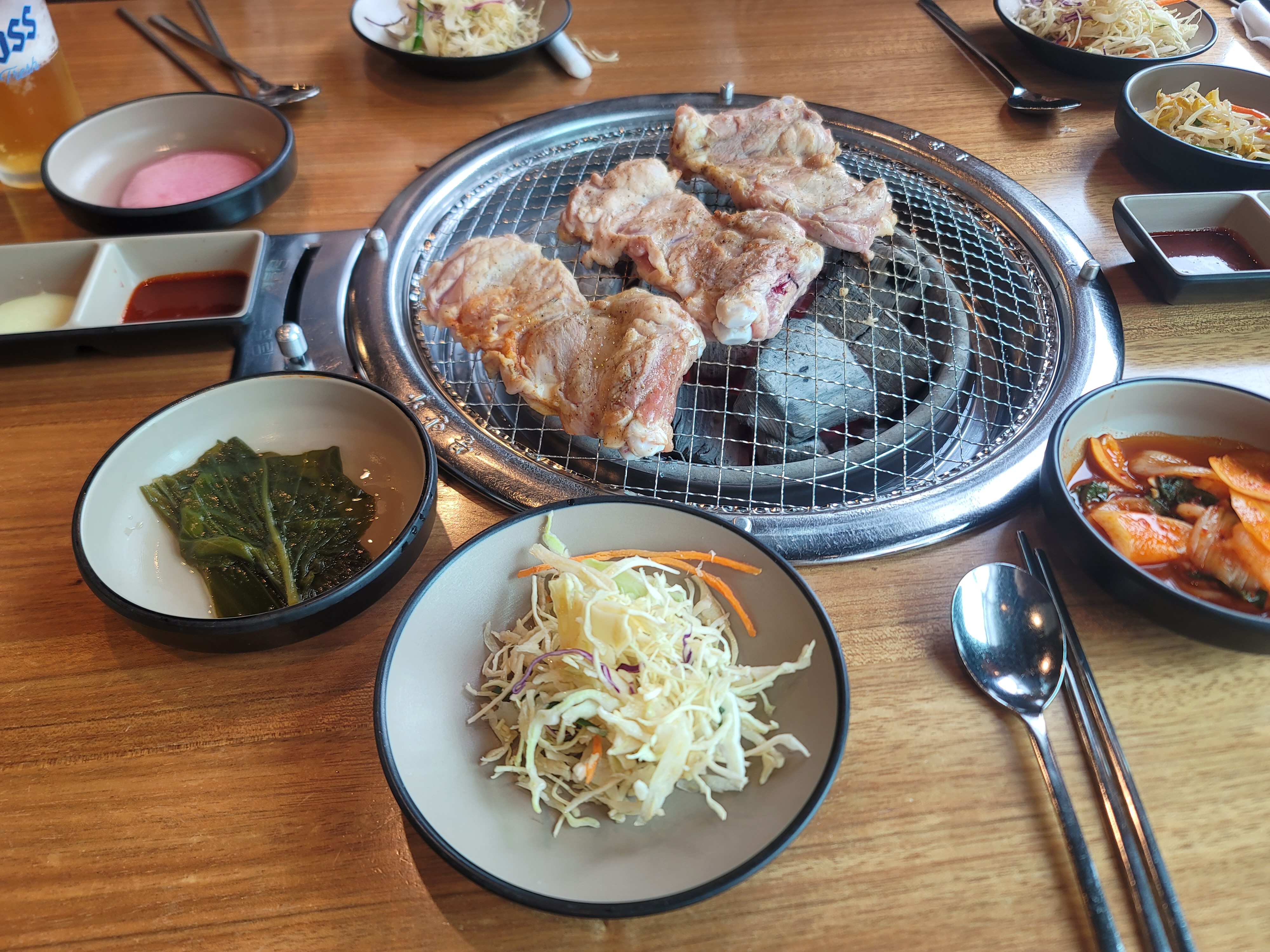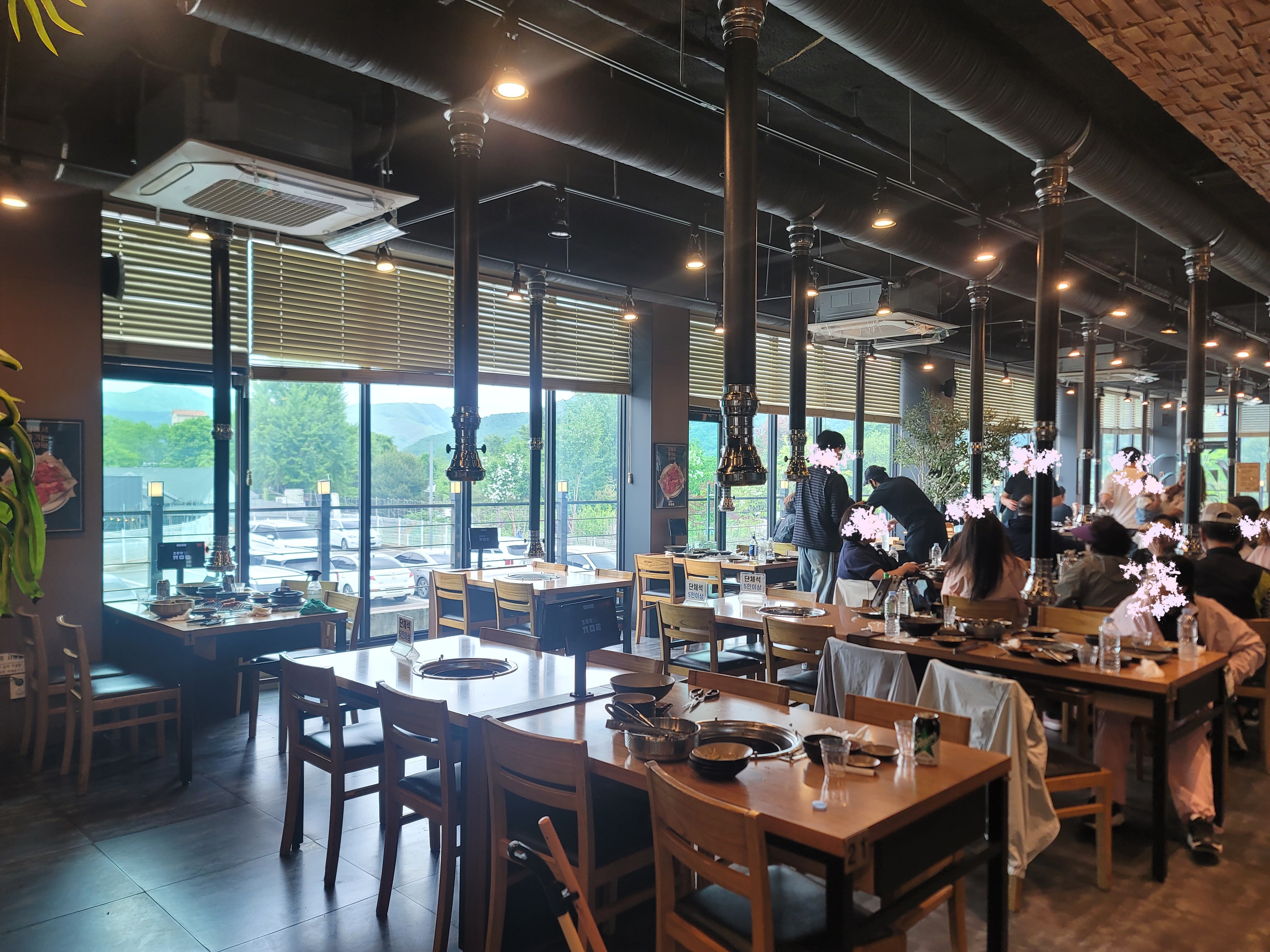넓은 주차장, 깔끔한 인테리어, 가족·단체 방문에 적합 숯불이 강해 자주 뒤집어야 하며, 초보자는 굽기가 어렵다고 느낌