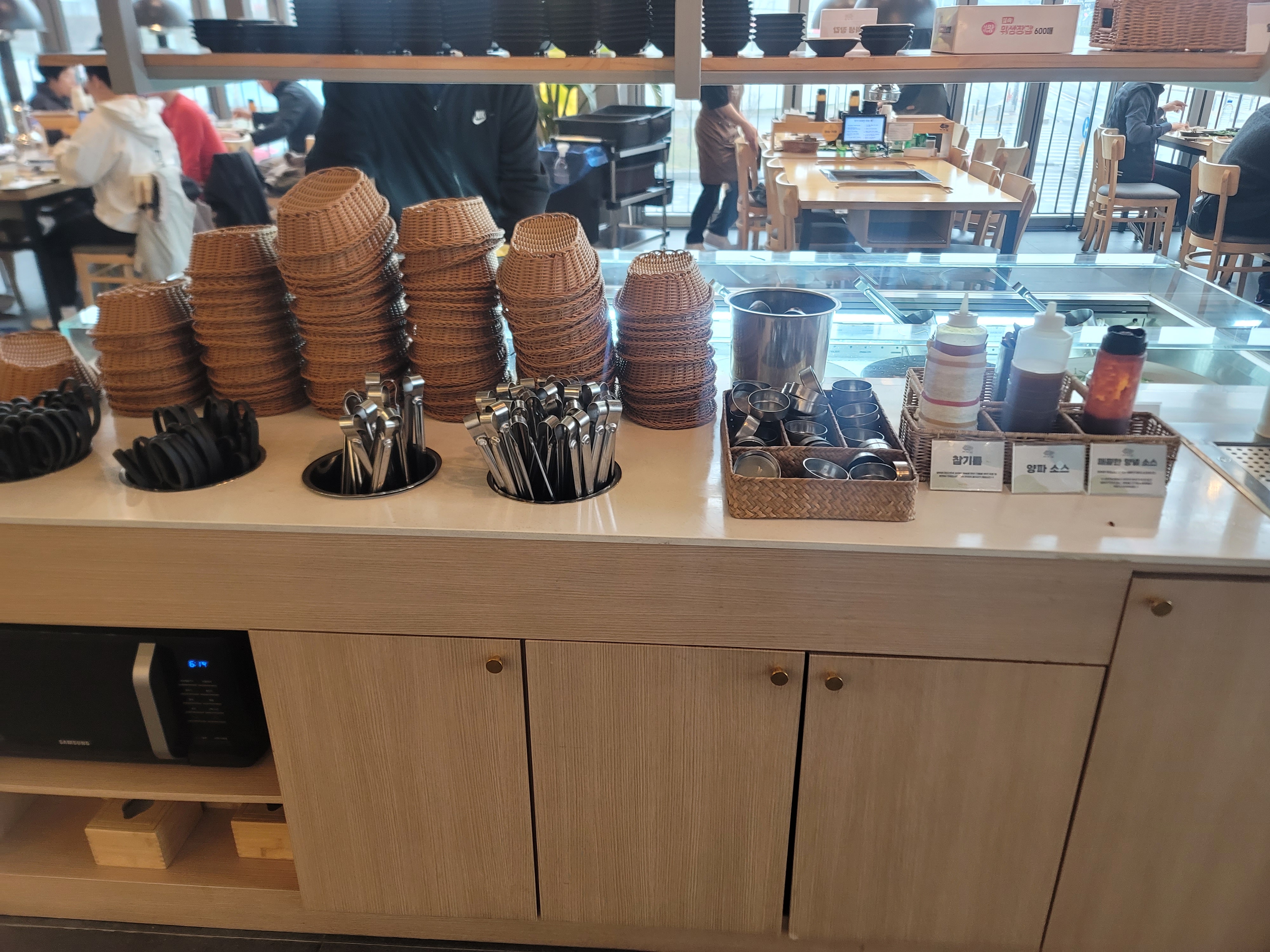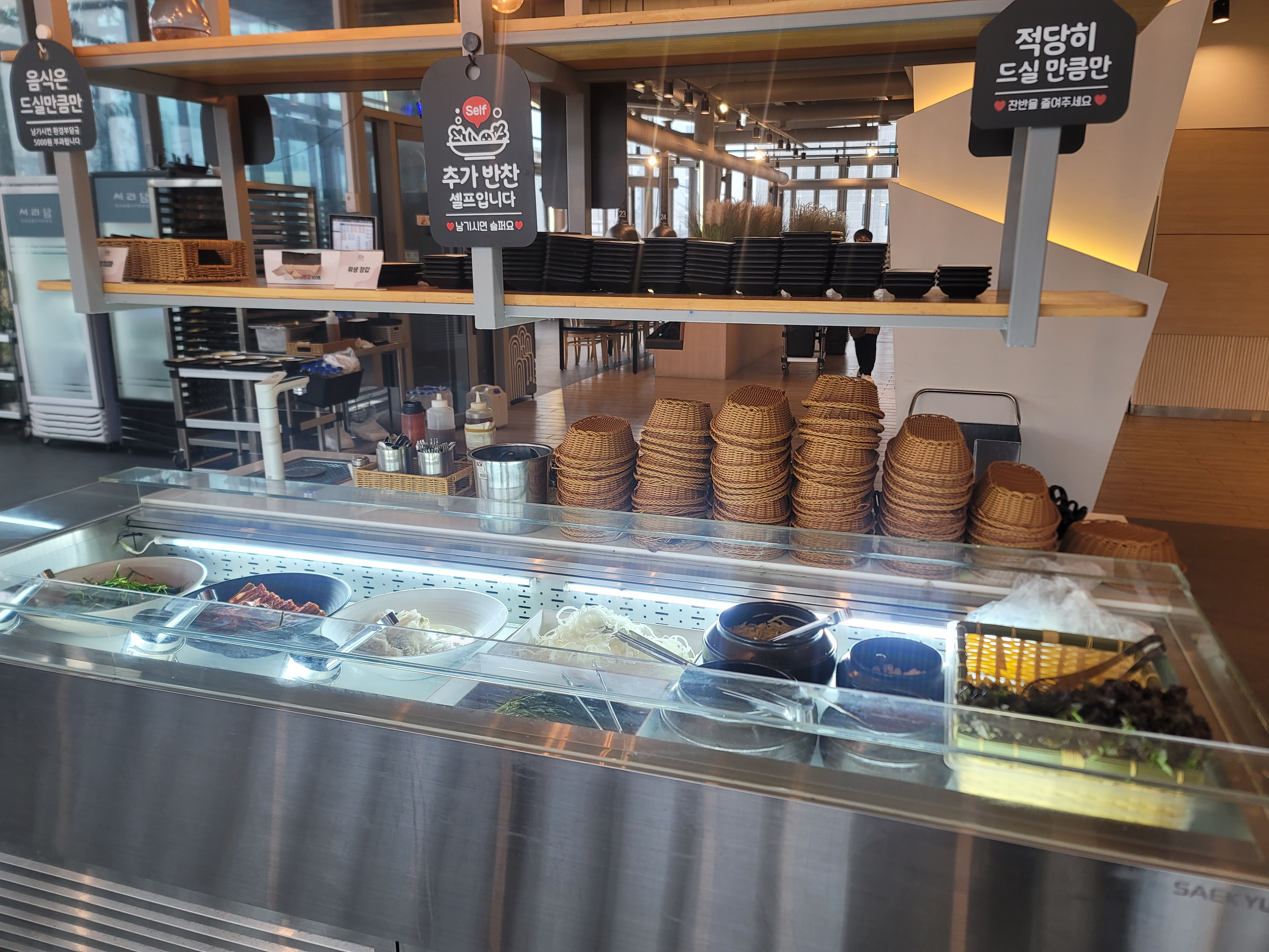 셀프바 :신선한 채소, 명이나물, 파김치 등 반찬을 자유롭게 이용 가능