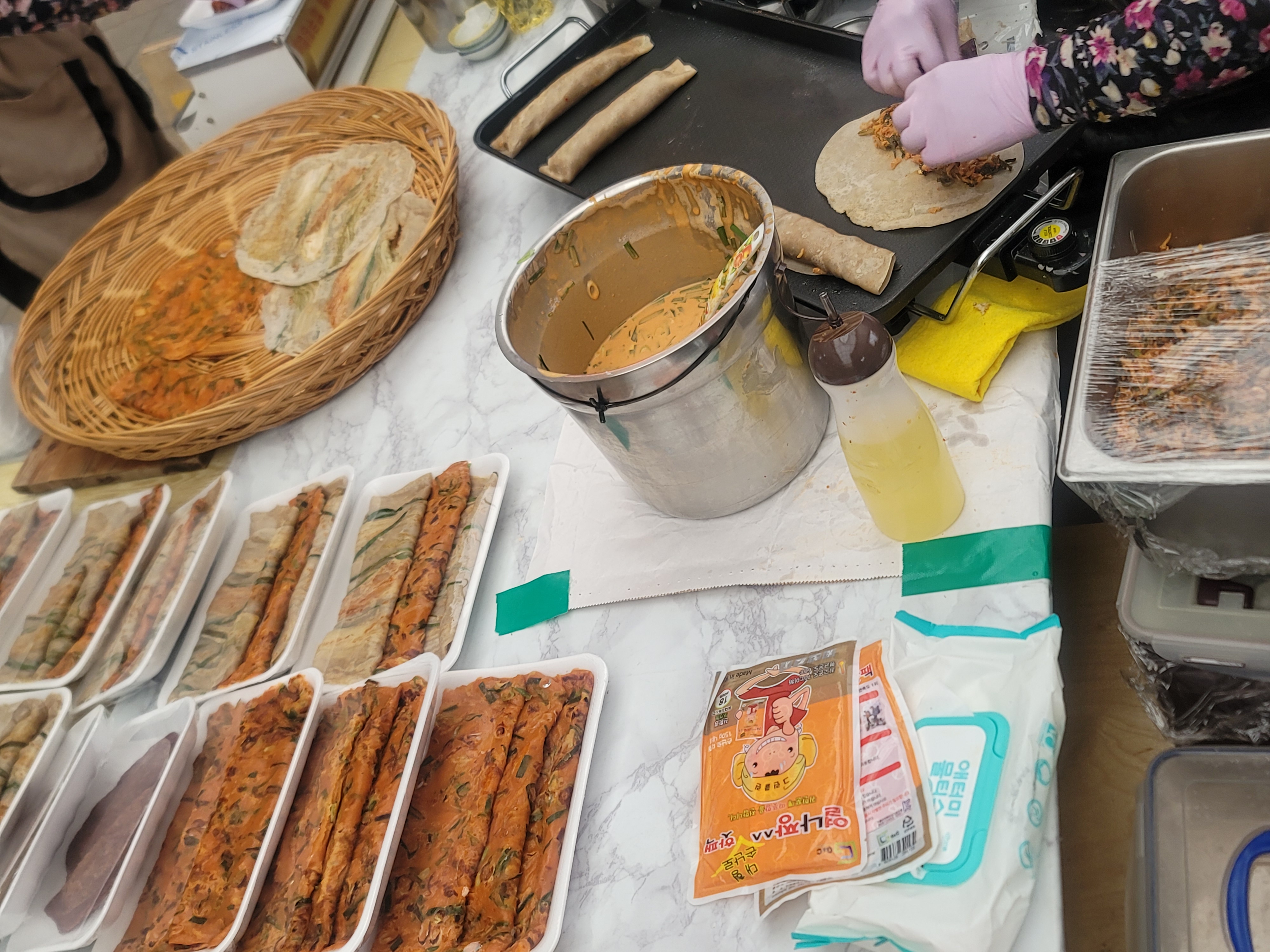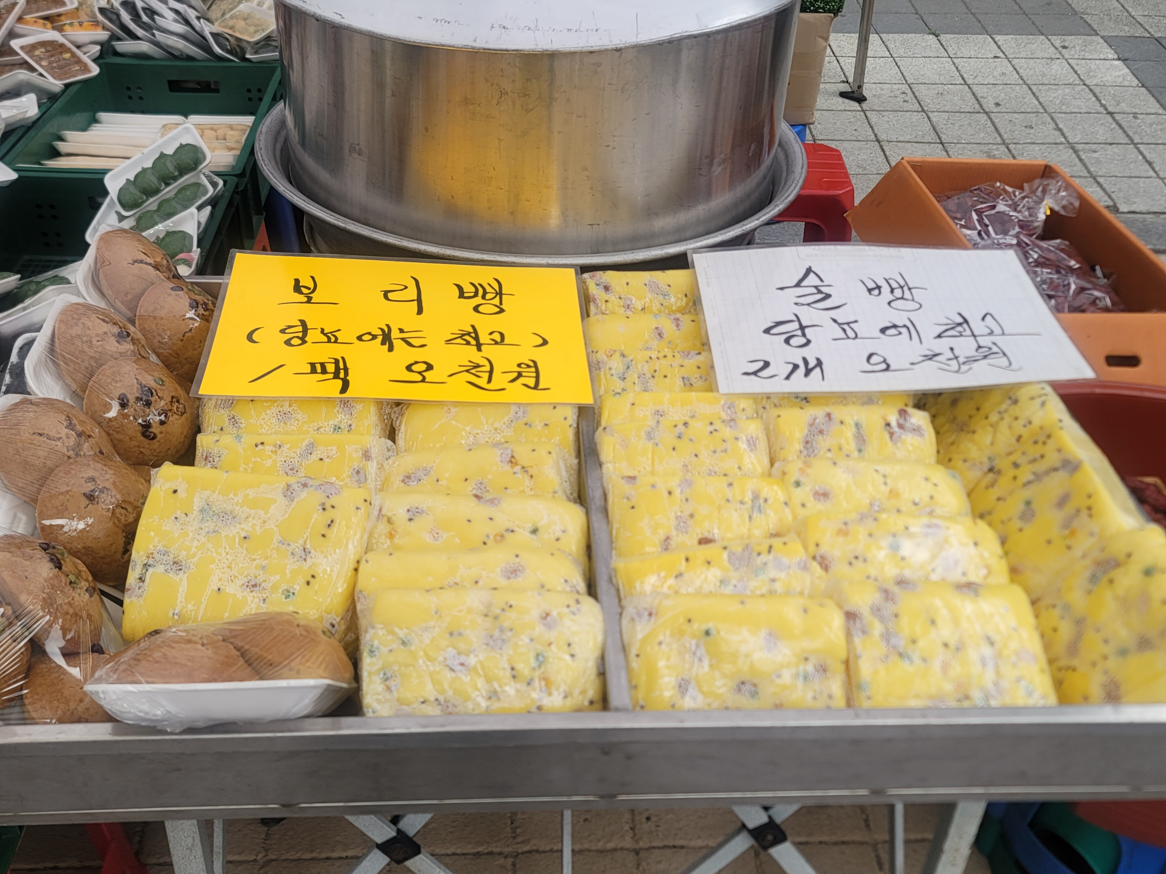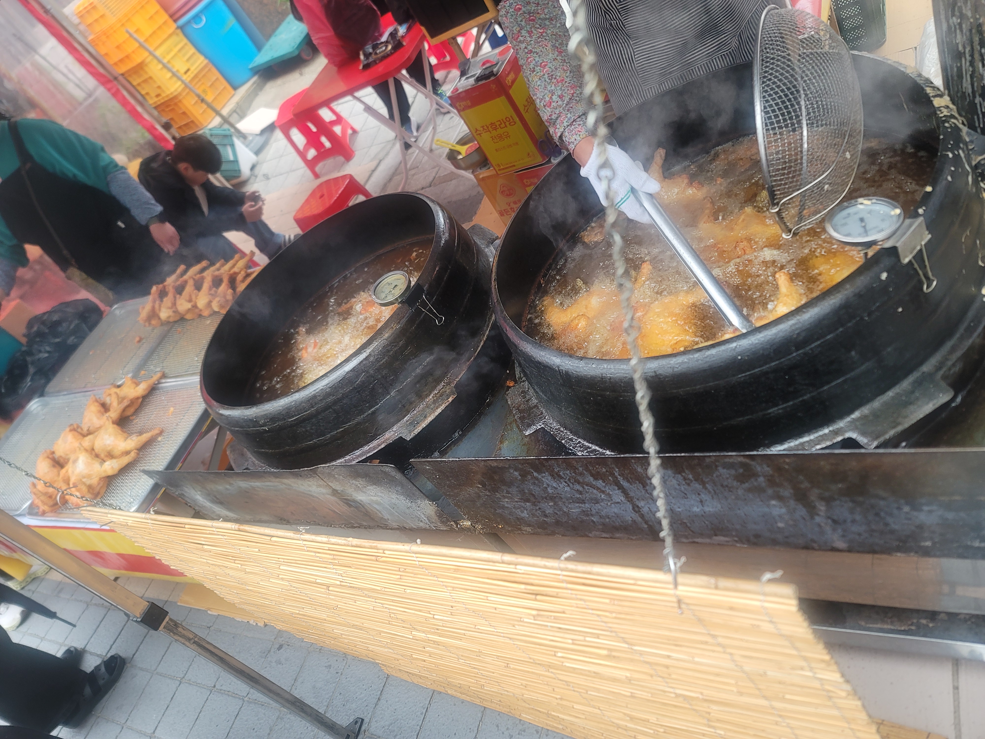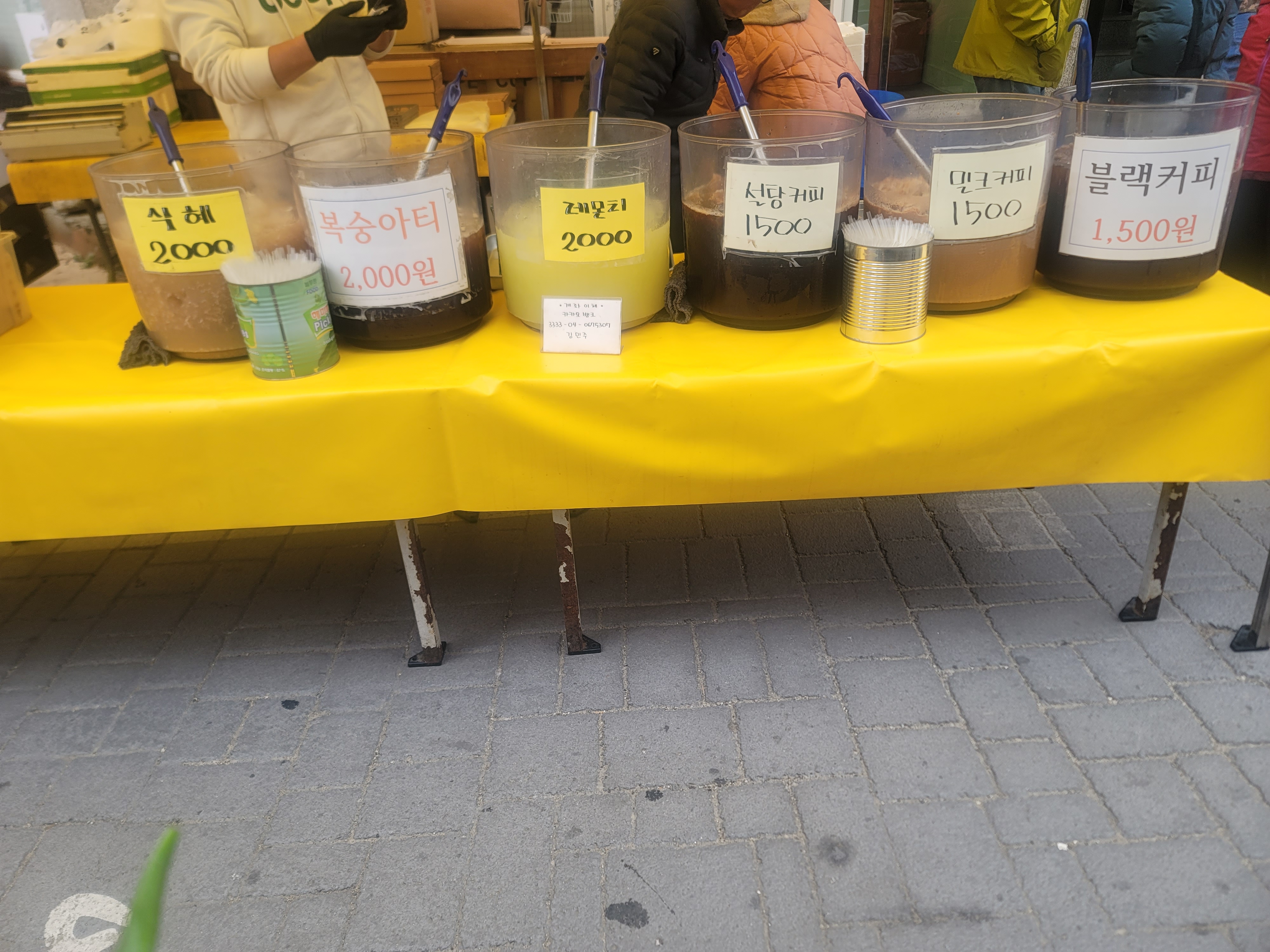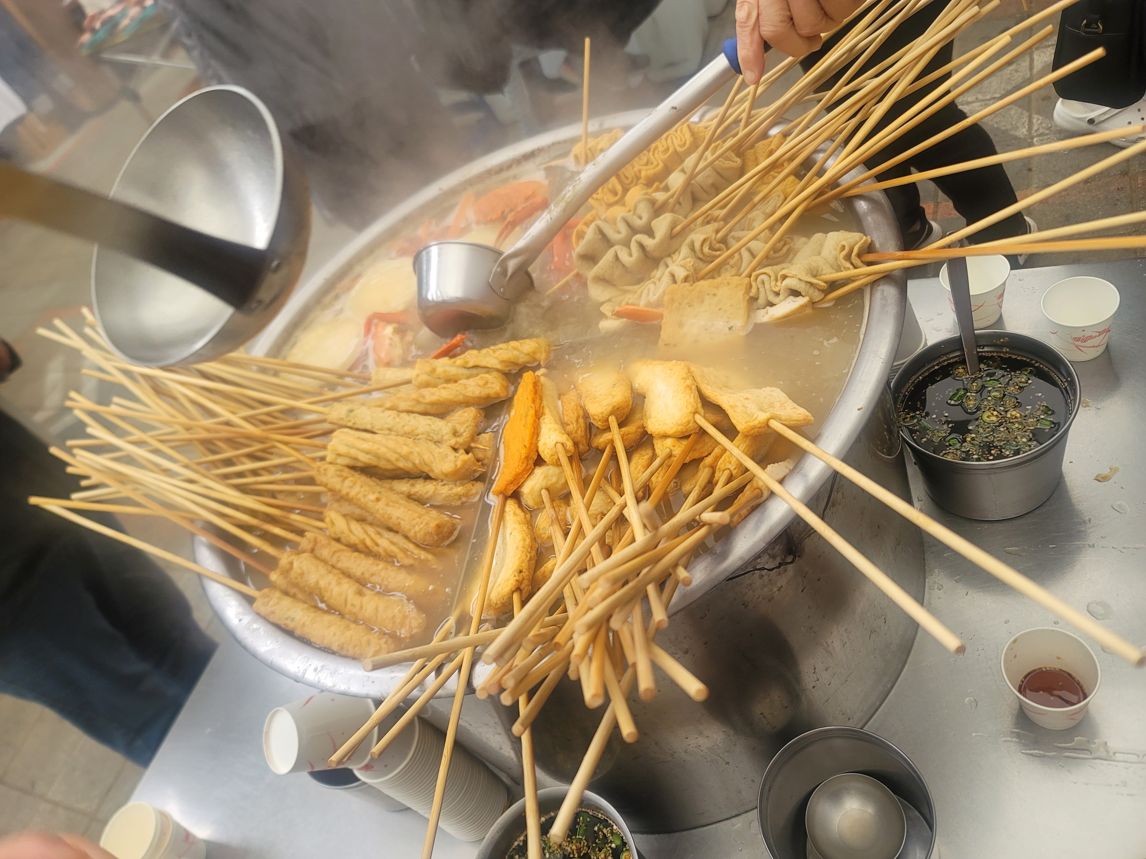 고소한 기름 냄새가 퍼지는 즉석 도너츠, 옥수수빵, 어묵꼬치가 정말 별미였어요. 특히 시장 안쪽에 있는 순댓국집은 지역 주민들 사이에서도 유명한 맛집입니다.