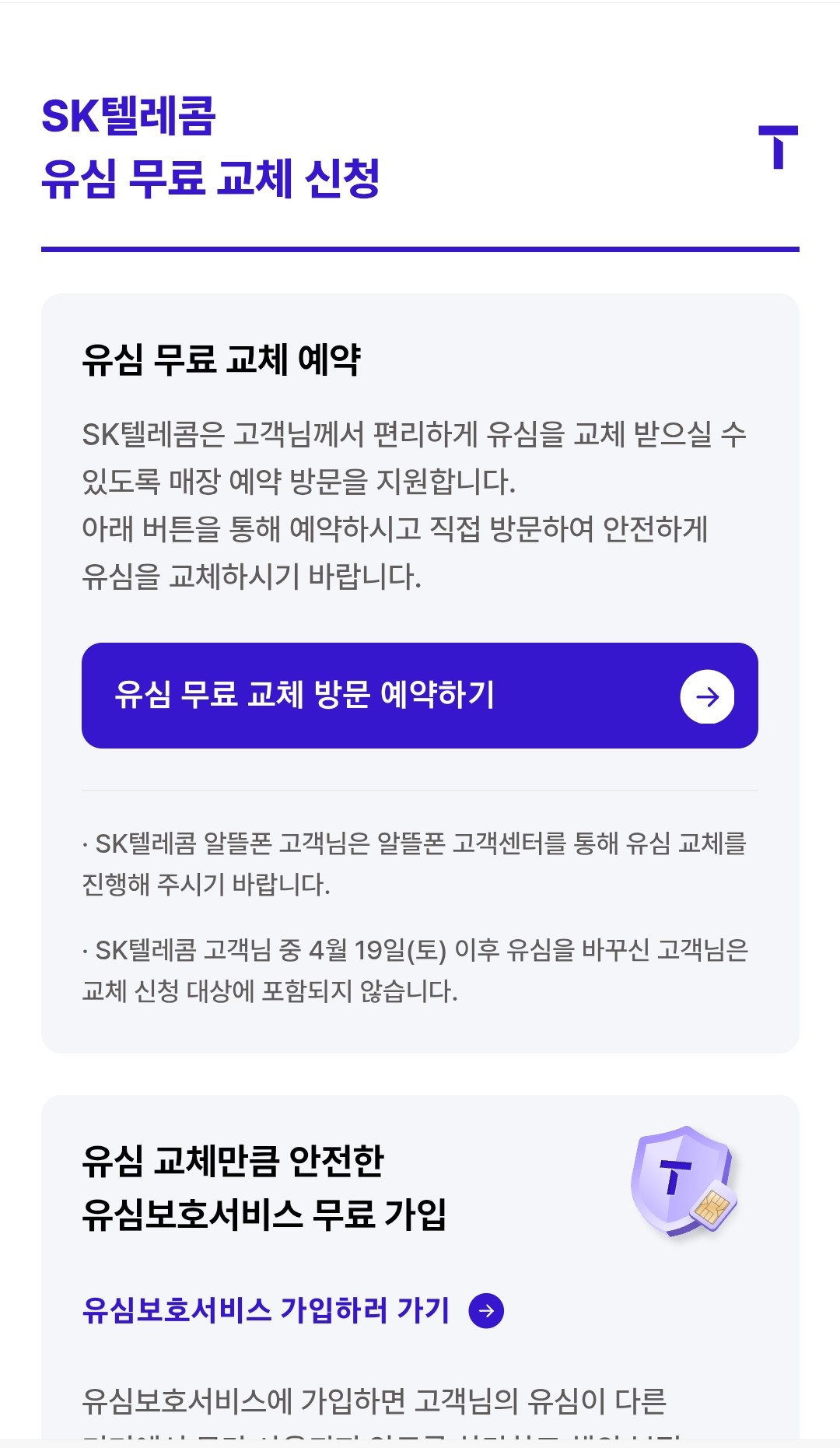 - SKT 유심교체 예약 사이트 주소: https://care.tworld.co.kr/usim/