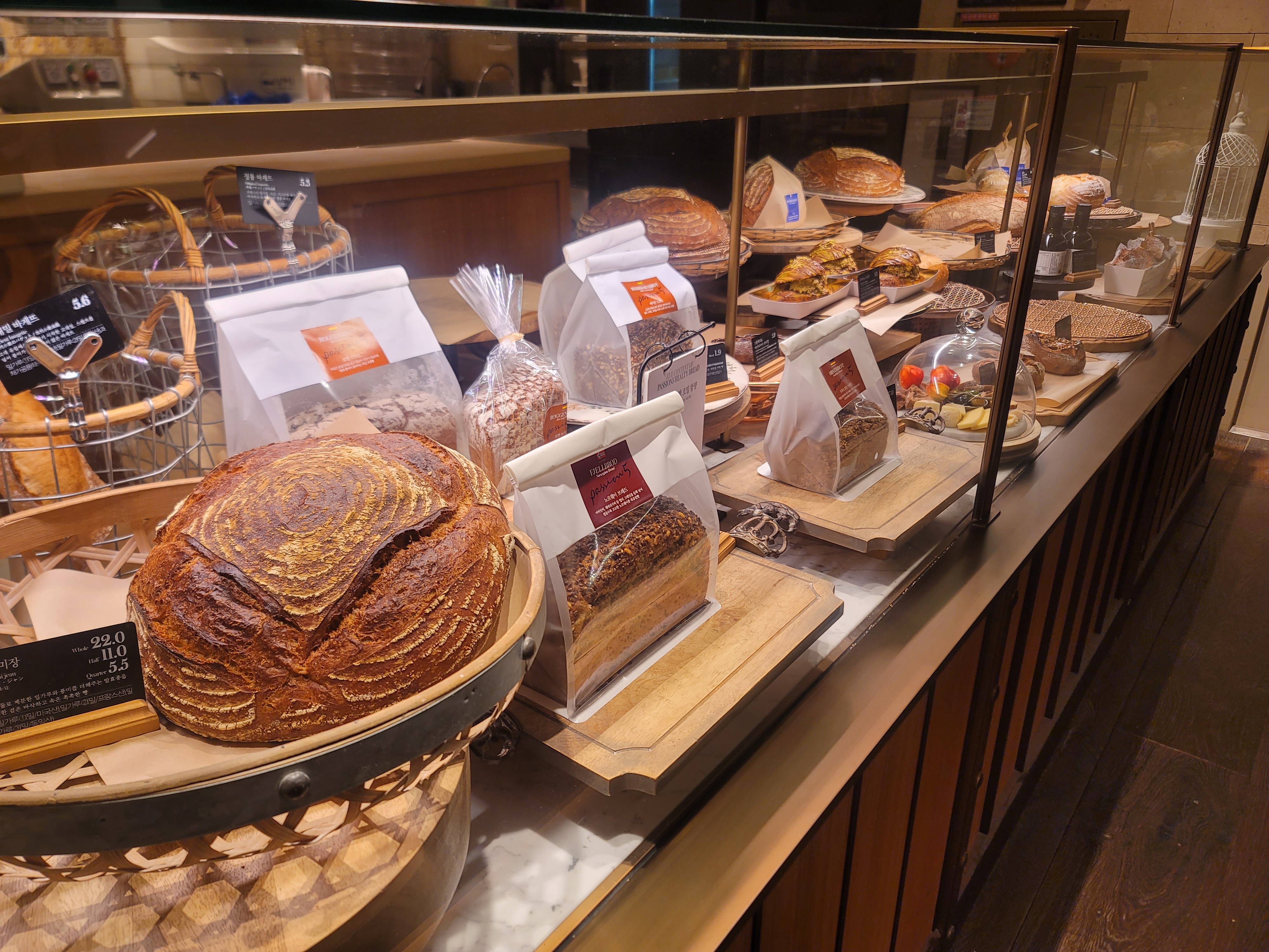 상시 1층 베이커리에서 구매한 빵과 다양한 디저트