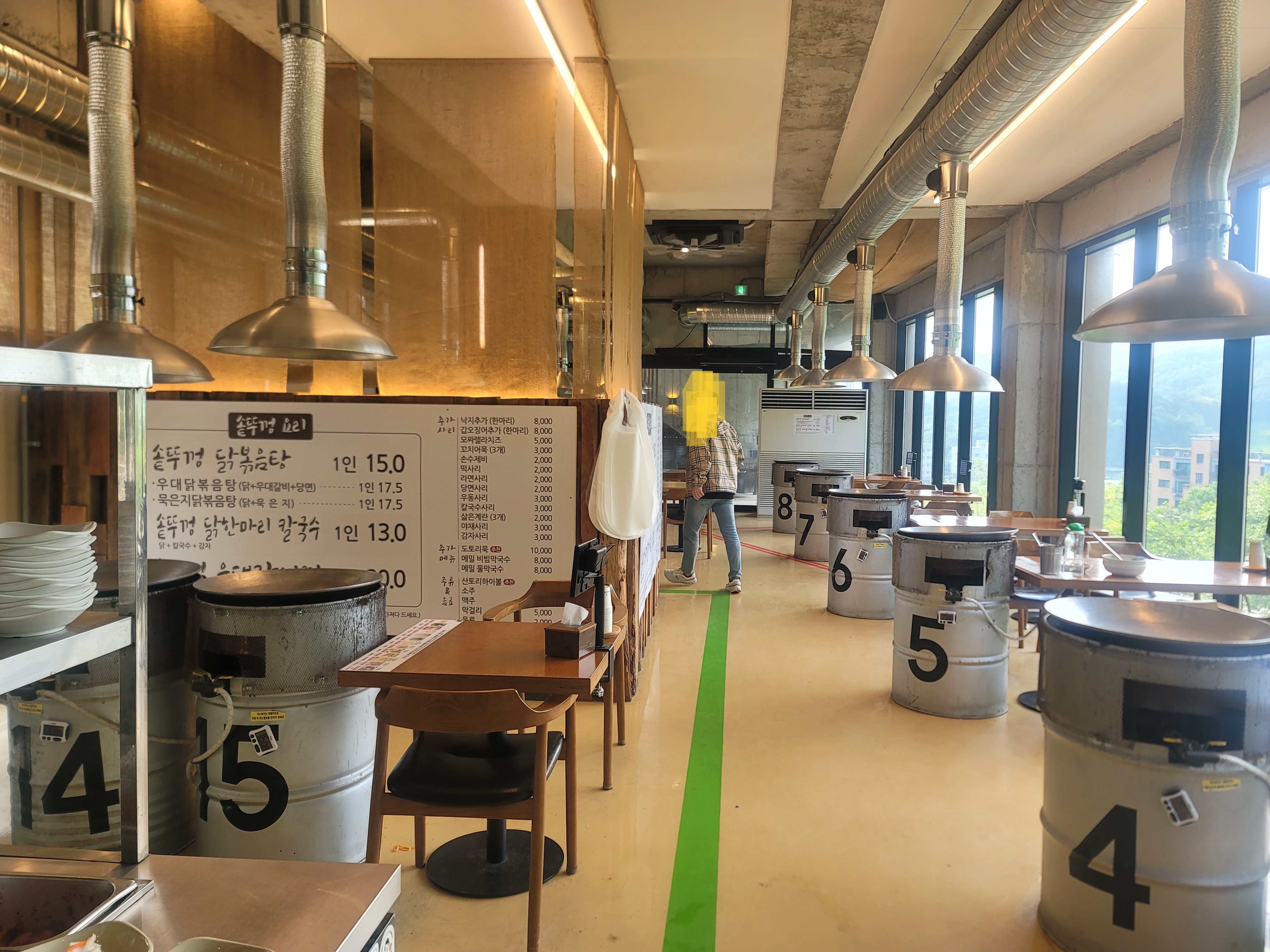 주말 오후 영업 시작 전이라 입구에서 잠깐 대기 후 바로 웨이팅 없이 입장이 가능했고 식당 안으로 들어서니, 각 테이블마다 솥뚜껑이 올려져 있는 모습에서는 마치 캠핑장에 온 듯한 즐거움이 추가되었습니다.