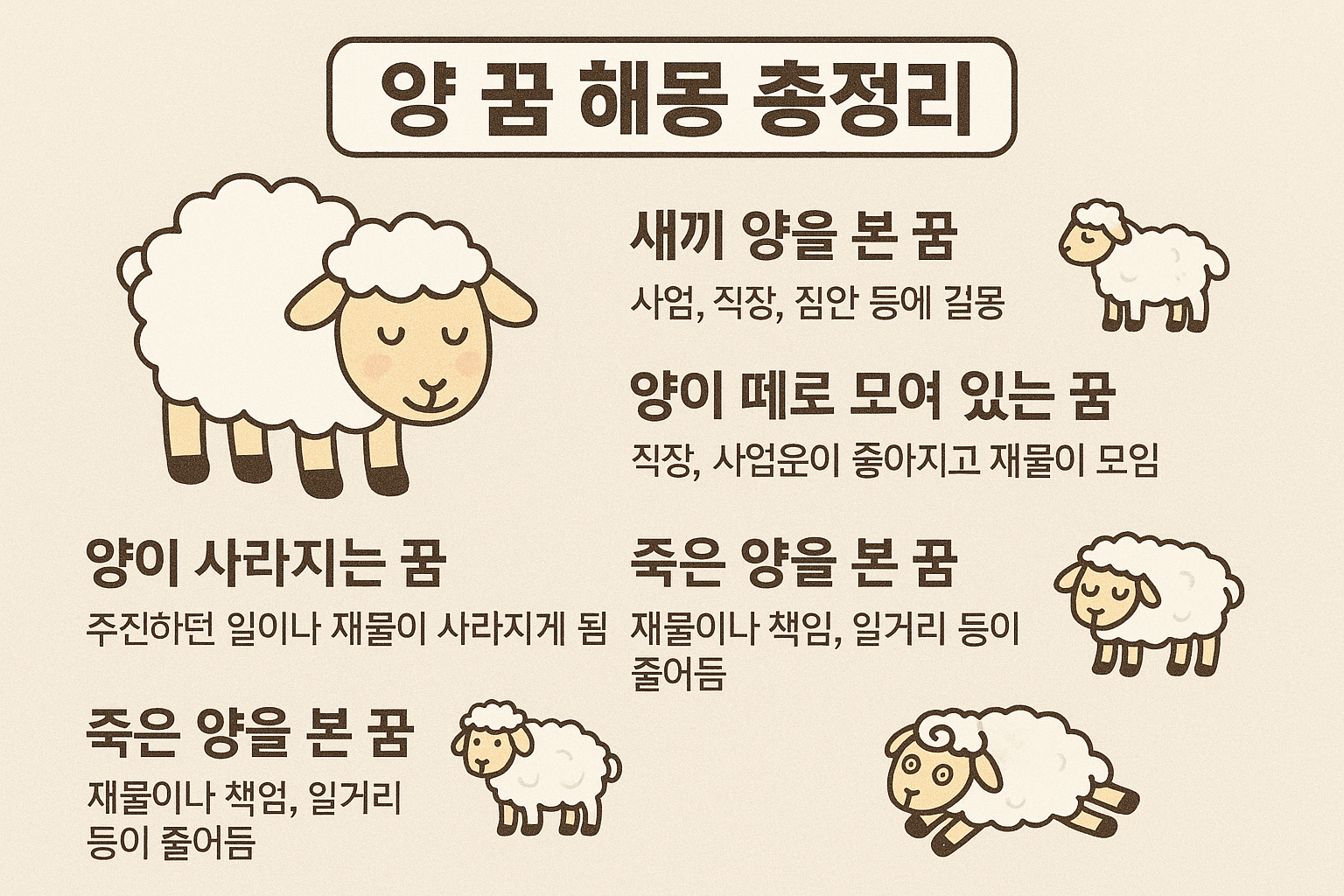 오늘은 양 꿈해몽 100가지를 색상·행동·상황·배경·상호작용별로 나누어 체계적으로 정리해 보았습니다.