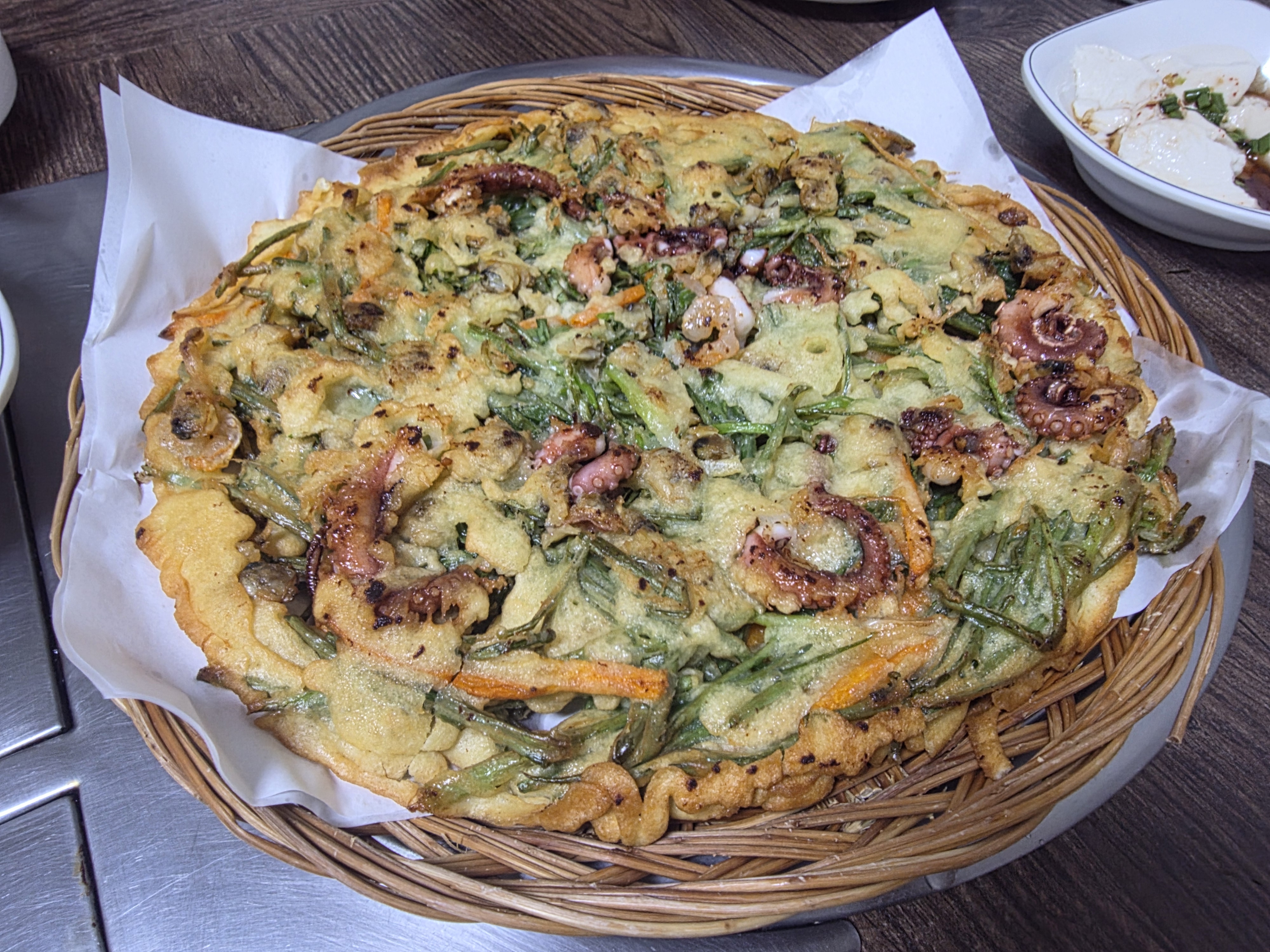 - 빗소리와 한옥 인테리어, 매운 낙지 한 입의 시너지! 특히 해물파전은 비 오는 날 최고의 선택
