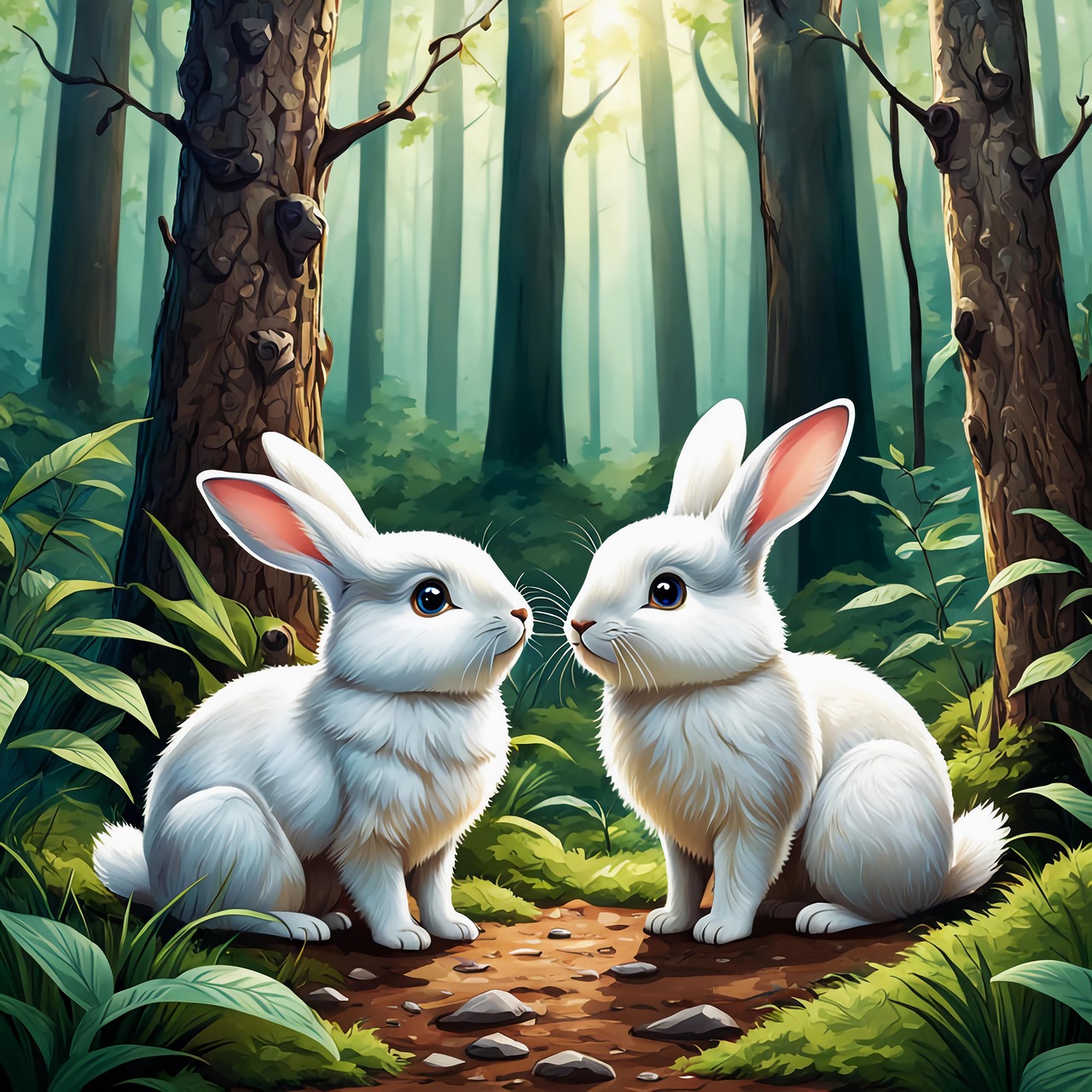 숲 속에서 토끼가 새와 이야기하는 꿈은 교감, 소통, 새로운 인연을 의미합니다. 주변과의 관계가 더욱 돈독해질 수 있으며, 새로운 친구나 동료를 만날 수 있습니다.