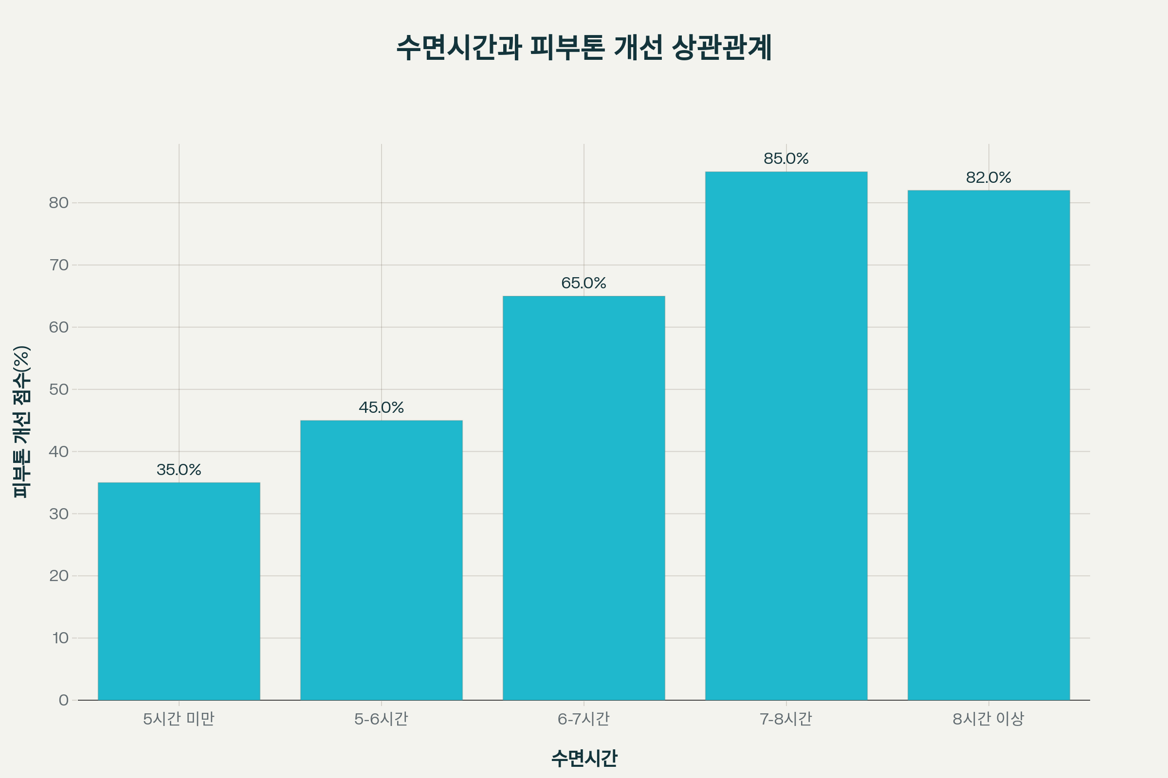 - 하루 7~8시간 수면 시 성장호르몬 분비 → 피부 재생, 면역력 강화.